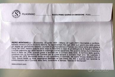 Busta Primo giorno con francobollo Indro Montanelli – data emissione timbratura 22-04-2009 Montagnana PD. Vendo a 15 euro