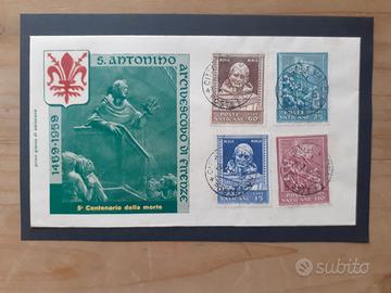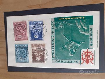 busta affrancata e annullata primo giorno di emissione centenario della morte S.ANTONINO arcivescovo di Firenze 1459 1959