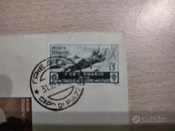 - Affrancatura Italiana: 2 Francobolli del Regno d'Italia serie "Centenario Medaglie al Valore" (10c e 15c) annullati regolarmente.