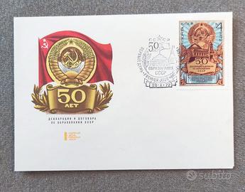 Vendo n.5 buste filateliche russe , anno emissione 1972 , per i 50 anni della Dichiarazione del Trattato sulla Formazione dell' URSS .