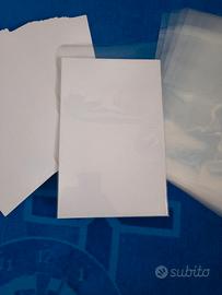 Kit di 30 buste + 30 cartoncini per conservare al meglio i fumetti. Sia le bustine protettive che i cartoncini sono nuovi, mai usati (le bustine hanno ancora la pattina adesiva da staccare) e sono adatti per fumetti / albi spillati tipo quelli americani marvel e dc. Le dimensioni delle bustine sono : 17,6 x 26,5 centimentri mentre i cartoncini misurano 17,1 x 26,6 centimetri e ovviamente sono compatibili tra di loro, come potete vedere in foto. Per altre informazioni, contattatemi pure. Grazie ironman spiderman batman flash wonder woman wolverine deadpool venom pk paperinik superman thor daredevil xmen fantastici quattro uomo ragno avengers comics backing boards