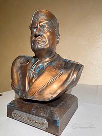 Busto del Duce - Benito Mussolini in resina completamente dipinto a mano. Finitura effetto anticato. Possibilita di personalizzare targhetta e colore della finitura.(misure 22x16)