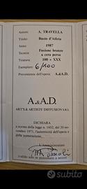 Opera di A. Travella Busto d'atleta realizzato con tecnica di fusione in bronzo a cera persa. Base in marmo nero. Anni 70 Tiratura 100 + XXX Esemplare 6 / 100 Tutto come riportato sull'attestato di autenticità allegato. Con la sua scatola, anche se priva di coperchio. H cm 25 Base cm 11 x 11 Peso Kg 2