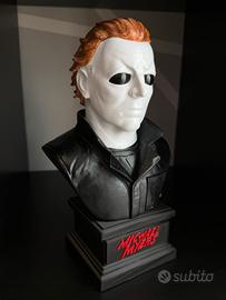 Busto decorativo ispirato a Michael Myers, completo di piedistallo con il nome inciso.
