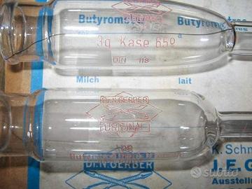 Ormai oggetti da collezione. . 2 vecchie provette specifiche per misurare la quantita di grasso presente nel latte , con il metodo Gerber, che si usa fin dal 1892 ... adesso ci sono altri sistemi moderni.