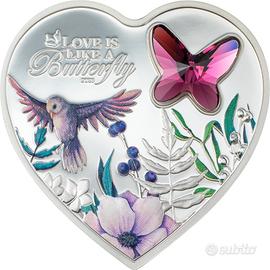 BUTTERFLY Brilliant Amore Cuore Moneta Argento 5$ Cook Islands 2023