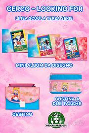 C_E_R_C_O materiale scolastico di Sailor Moon anni 90, anche usato ma in buono stato! Nelle foto trovate tutto ciò che mi interessa! Posso anche scambiare con: - set di 5 orologi in scatola (usati) - Sailor Moon con specchiera e orecchini, nuova in box - Super Chibiusa nuova in box - Sailor Moon Bandai Europe nuova in box