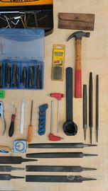 Lotto utensili, alcuni nuovi e altri usati. Lime, maschi, avvitatore Fein a bassa tensione, 1 kg di chiodi corti, chiave speciale a 4 punti, rasoi in pessime condizioni, chiavi a brugola, ecc.... come da foto.