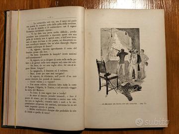 DA COLLEZIONE === CACCIA === VIAGGI === Jack La Bolina [Augusto Vittorio Vecchi], Caccie su terra e su mare, lettere di due giovani esploratori, con illustrazioni di C. Chessa, Torino, Paravia, 1896, pp. 116 [+ pp. 16 pubblicitarie delle Pubblicazioni illustrate di Paravia, molto belle e illustrate con vignette], molto illustrato, cm 22; copertina rigida editoriale telata (verde) con autore e titolo in oro, tagli color rosso, interno perfetto, come nuovo, lieve e uniforme ingiallimento delle pagine dovuto al tempo e alla carta usata, attualmente NON presente su Internet, prezzo vera convenienza per collezionista, ottima e apprezzata idea regalo per l'imminente NATALE.