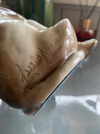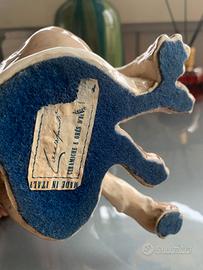 La firma è impressa nella ceramica sul fianco della scultura e in basso reca parte dell’originale etichetta caratteristica di Cacciapuoti.