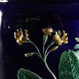 Cache pot in maiolica blu cobalto con decoro policromo a rilievo raffiguranti primule e piante erbacee alternate. Bordo in giallo girasole. Sotto la base marchio della manifattura stampato e numero di produzione dipinto sottovernice. Codice: OGANCE0299820 Condizione prodotto: Oggetto in buone condizioni, presenta segno di restauro sul bordo e difetto sotto la base. Cerchiamo di presentare lo stato reale dell'oggetto nel modo pi completo possibile con le foto. Qualora alcuni particolari non risultassero chiari dalle foto, fa fede quanto riportato nella descrizione. Misure: Largh.:23.00 cm, Alt.:22.00 cm, Prof.:0.00 cm DISPONIBILE RITIRO, PREVIO SALDO, SU APPUNTAMENTO PRESSO LA SEDE DI MILANO! Venditore: Barbara (dal Luned al Venerd : dalle 9:00 alle 19:00, Sabato: dalle 10.00 alle 19.00) Per informazioni dettagliate contattateci su Whatsapp. Disponibili ad inviare video o foto integrative su Whatsapp. Di Mano in Mano, Negozio dell'usato di Milano, viale Espinasse, 99 (Zona Certosa). Oltre 1000 mq di esposizione, tra usato, vintage, modernariato, antiquariato, arte e libri. Esplora il nostro portale mercatiniusato.org per scoprire centinaia di arredi usati.