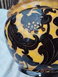 Vendo Cachepot Giuseppe Mazzotti Albissola , anni 30/40 in ottime condizioni. Dimensioni : altezza 19 cm, diametro superiore 24 cm, diametro inferiore 15 cm. Si segnala che non ci sono linee di rottura - fratture, ma segnalo 4 piccole mancanze di ceramica , sull'orlo ondulato superiore e una alla base del vaso, qualora si ruoti . Ottimi colori e disegni .