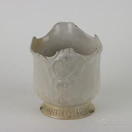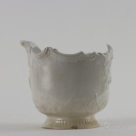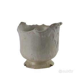 Cachepot in maiolica bianca a foggia di elmo rovesciato.