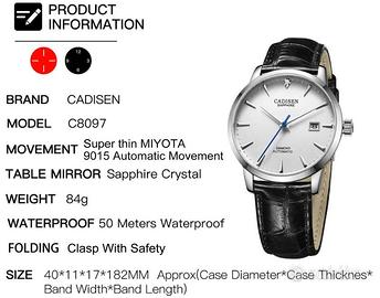 Tipo di movimento: meccanico automatico, MIYOTA 9015 Giappone