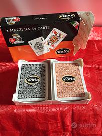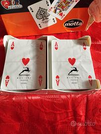 Vendo 2 mazzi da 54 carte da gioco Modiano made in Italy - caffè motta, per poker-burraco-ramino-bridge. Nuove, nella loro scatola originale, leggermente ammaccata . Spese a carico del destinatario.
