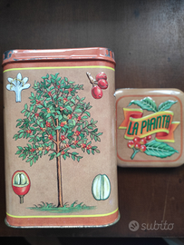 Una scatola in latta che conteneva cioccolatini al caffè con immagini in rilievo della pianta, marca diversa POCKET COFFEE