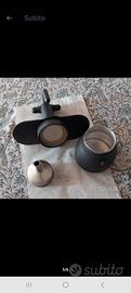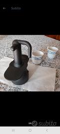 particolare caffettiera in alluminio anni 80 con piattini esterni per 2 tazze, mai usata, senza confezione