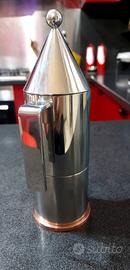 L’oggetto si presenta con il suo inconfondibile corpo cilindrico e il coperchio conico, unendo eleganza formale e alta qualità costruttiva.