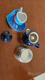 Set da caffè Baci Perugina con piattino a forma di cuore.