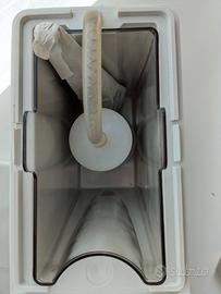 La macchina è new old stock: rimasta chiusa nella sua confezione originale dagli anni 80. Non è quindi mai stata esposta alla luce, motivo per il quale presenta l'originale colore bianco latte, senza aver sofferto dell'ingiallimento tipico delle plastiche ABS utilizzate fino agli anni 90. Progettata da Rodolfo Bonetto nel 1981, Cimbalina è la macchina per espresso destinata all’uso domestico, realizzata dallo storico marchio italiano La Cimbali. Il modello è stato esposto al MUMAC, il museo dedicato alle macchine da caffè, grazie alla collaborazione tra Gruppo Cimbali e Fondazione Castiglioni. Compatta nelle dimensioni, dal design essenziale e dalla forma distintiva, si inserisce facilmente in qualsiasi contesto casalingo. È dotata di lancia vapore, filtro addolcitore e permette la preparazione di una o due tazzine di espresso. In dotazione si trovano due filtri, per una e per due tazze (aspetto piuttosto raro). Non esitate a contattarmi per ulteriori foto o informazioni. Spedizione standard a 10€. Per spedizione assicurata (+5€) contattatemi prima tramite messaggio.