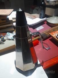 Stupenda Caffettiera vintage "ottagono" con forma piramidale prodotta dalla Fratelli Calderoni in acciaio inox da sei tazze con riduttore per tre tazze. La caffettiera è nuova mai utilizzata. La "Fratelli Calderoni" è un'azienda tra le più antiche nel settore della produzione di articoli per la casa, famosa per la qualità dei prodotti capaci di competere con brand quali Alessi, Sambonet e altri conosciuti in tutto il mondo per qualità del prodotto e design unico.