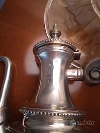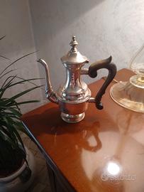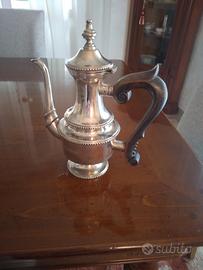 Meravigliosa caffettiera in argento antica. Manico in legno intagliato a mano. Da esposizione. Meraviglioso pezzo di antiquariato. Introvabile