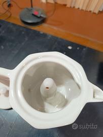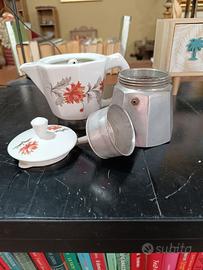 Caffettiera vintage Flory Express prodotta nelgli anni '70, bricco superiore in porcellana bianca con decori floreali. E' un pezzo da collezione anche se funzionante.