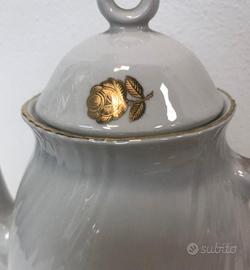 Caffettiera in ceramica TOGNANA con decorazioni e contorni ORO; nessuna consunzione o difetto nelle decorazioni, perfetta come nuova. Diametro massimo 11cm e altezza 17cm senza coperchio. Spedizione possibile, garantita al 100%. Scrivetemi solo se realmente intenzionati. Vigonza - Padova.