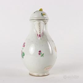 Caffettiera in porcellana bianca con decorazione policroma a mazzetti di fiori e