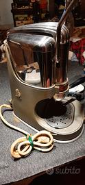 Disponibile : articolo d'arredo di design industriale di marchio " Caravel " by Arrarex - made in Italy ( Milano) - questa caffettiera di modello a leva per caffe' espresso ( a 2 tazzine ) e' un originale risalente al 1956 , stato di conservazione molto buono , funzionante ( vedere 1ma foto con spia rossa accesa sul davanti ) funziona a 220w , in materiale di metallo pesante smaltata di verde e metallo cromato rifinita in bachelite ( nei suoi manici ) e' tutta originale compreso il cavo e la sua spina marchiata e funzionante .