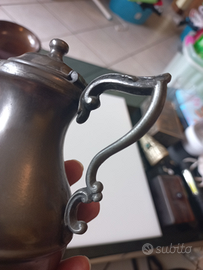 Caffettiera teiera antica in peltro