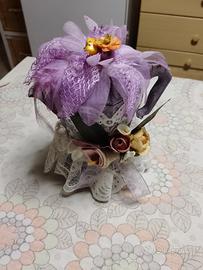 Vendo e valuto offerte per caffettiera vintage decorata con fiori e pizzo - decorazione floreale viola - dettagli in pizzo bianco - manico decorato