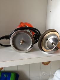 Caffettiera elettrica marca Velox anni ‘60/‘70 in acciao e rifiniture color arancione. Completa di bricco con manico un po’ scolorito. Bell’oggetto da collezione o espozizione.