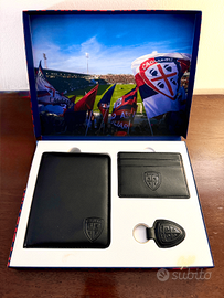 • Portadocumenti / portafoglio (nero in pelle, logo Cagliari in rilievo)
