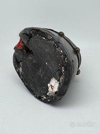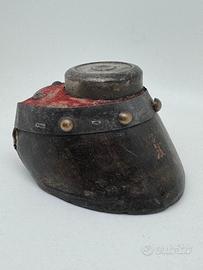 Questa tipologia di calamaio, molto particolare e ricercata, nasce dal riutilizzo dello zoccolo, lavorato e rifinito con elementi metallici, ed era diffusa tra fine ’800 e inizio ’900 come oggetto da scrivania dal forte valore simbolico e decorativo. 📌 Caratteristiche principali: •Tipologia: calamaio antico “sabot” •Epoca: circa 1900 •Materiale: zoccolo di cavallo con parti in metallo •Dimensioni: oAltezza: 7 cm oLarghezza: 7,5 cm oProfondità: 11 cm 📌 Stato e dettagli: •Presenti iscrizioni incise sulla scarpa, probabilmente riferibili al cavallo o al proprietario •Orlo borchiato ben visibile •Leggere tracce di ossidazione sulle parti metalliche, compatibili con l’età •Buono stato di conservazione generale, oggetto non restaurato, con patina originale Oggetto di grande fascino storico, molto apprezzato da collezionisti di calamai, antiquariato e curiosità d’epoca, nonché perfetto come elemento decorativo per scrivanie, studi o ambienti vintage e rustici. ________________________________________ Sono un privato e appassionato collezionista, pertanto non essendo un negoziante, non posso rilasciare alcuna garanzia. Gli articoli che vendo sono per lo più usati o di seconda mano. Descrivo sempre ogni oggetto nel modo più accurato possibile, evidenziandone pregi e soprattutto eventuali difetti e ci tengo a sottolineare che resto volentieri a disposizione per fornire ulteriori informazioni, foto o dettagli. È possibile acquistare l’articolo tramite il servizio “TUTTOSUBITO”, che garantisce massima trasparenza e sicurezza sia per l’acquirente sia per il venditore.