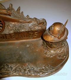 CALAMAIO ART DECO' IN BRONZO: ARTIGLIERI ALPINI E BERSAGLIERI. FIRMATO H. FUGERE.