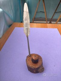 Articolo per collezionisti. Antico calamaio fatto a mano,in legno con porta pennino in metallo anni 30 in buone condizioni. Presenti segni del tempo, come il legno parzialmente tarlato , ora bloccato dal trattamento antitarlo.