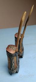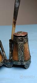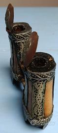 Doppio calamaio in osso e argento berbero origine africana. Raro e ben tenuto.