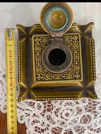 Pezzo da collezione. Tutti i pezzi sono originali non restaurato. Teste di leone ed alloggi laterali per le penne. Bellissimo verde iva smaltato.Diffuso in pochi esemplari e pochi intatti. Modello registrato, protetto. Ottimo in tutto tranne una piccola sbeccatura su un angolo della base visibile in foto., può essere riparato. Per questo articolo chiedono anche 319€. Pezzo unico dal design registrato. #encrierancien Vendo di tutto , nel mio profilo puoi trovare qualsiasi cosa. Approfitta dei miei bassi prezzi su prodotti di qualità (comprati ad alto prezzo e rivenduti a basso prezzo) per comprare con gli sconti per acquisti multipli