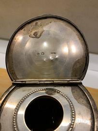 Calamaio vittoriano in zoccolo di cavallo con montatura in argento inglese e vaschetta in vetro