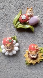 5 x 6 cm circa, in resina, magnete sul retro, ideali per il frigo. 1 euro al pezzo, tutti e tre 2. euro