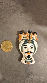 Coppia di Teste di Moro siciliane in ceramica dipinte a mano