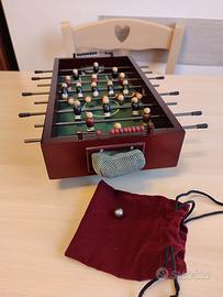 Mini calcio Balilla da tavolo in legno con giocatori dipinti a mano