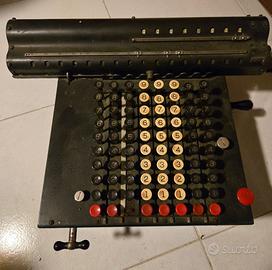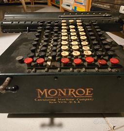 Calcolatrice meccanica “MONROE” (U.S.A.) 1° modello 1914 – 1919 peso Kg. 15. La “MONROE CALCULATING MACHINE COMPANY” è stata una ditta americana di macchine addizionatrici e calcolatrici fondata nel 1912 da Jay Randolph Monroe (1883-1937) su un progetto di Frank Stephen Baldwin (1838-1925), di cui aveva acquistato il brevetto. La Monroe fu tra le prime ditte a introdurre sul mercato calcolatrici dotate di tastiera, con aste sporgenti in modo progressivo, al posto di sistemi di leva.