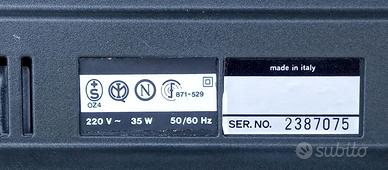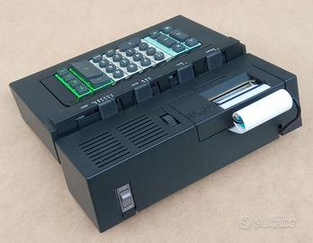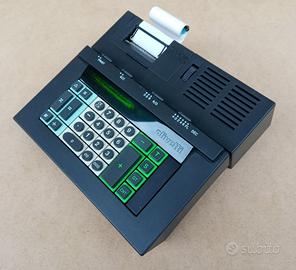Calcolatrice elettronica professionale Olivetti, modello Logos 41PD del 1977, mantello in plastica colore grigio scuro, stampante, con display verde, rotolo di carta di scorta, cavo alimentazione, funzionante e in ottime condizioni, con copertina. Oltre alle quattro operazioni, esegue percentuali sconti e maggiorazioni. Il design della macchina è di Mario Bellini, Antonio Macchi Cassia, Giovanni Pasini e Sandro Pasqui.