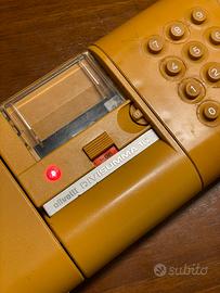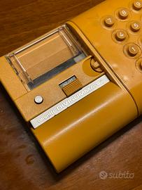 Oggetto di design dal colore iconico con tastiera in gomma, ormai raro da trovare.
