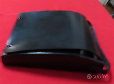 Con la calcolatrice viene fornita anche la custodia semirigida in cuoio sottile, ancora in buone condizioni, completa di maniglietta da trasporto e dei due metallici bottoni di chiusura a pressione.