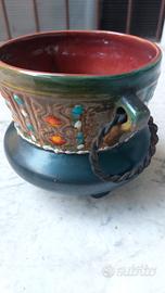 bellissimo piccolo vaso di ceramica vintage risalente ai primi anni del 900, la prova è l'etichetta attaccata sotto riporta un numero di telefono a 5 cifre risalente agli anni 30/40/50 ,per veri collezionisti del vintage