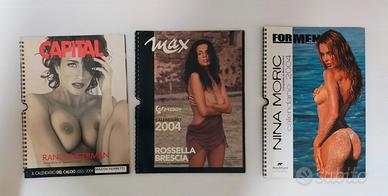 Vari calendari come da elenco. 1994 Max | Eva Herzigova 1997 Panorama | Maria Grazia Cucinotta Max | Modelle 1998 Max | Alessia Marcuzzi 1999 Max | Monica Bellucci 2000 Panorama | Alessia Marcuzzi Maxim | Alessia Merz GQ | Paola Barale 2001 Maxim | Eleonoire Casalegno Panorama | Manuela Arcuri GQ | Monica Bellucci Max | Megan Gale 2002 Capital | Luisa Corna Panorama | Martina Colombari Max | Kartika Max | Nina Moric 2003 Panorama | Luisa Corna 2004 Capital | Randi Ingerman ForMen | Nina Moric Max | Rossella Brescia 2005 ForMen | Samantha De Grenet Max | Alena Seredova 2006 ForMen | Magda Gomes ForMen | Francesca Lodo Max | Giorgia Palmas 2007 Matrix | Loredana Damato ForMen | Antonella Mosetti Max | Sara Tommasi 2008 Max | Debora Salvalaggio 2010 ForMen | Veridiana 2012 ForMen | Cecilia Capriotti 2014 ForMen | Raffaella Fico Lingerie | Modelle varie Backside | Modelle varie Fondital | Modelle varie 2015 Raffmetal Backside Femine 2016 Playboy Capannelle Glamour Raffmetal Naked 2017 Playboy - Lingerie | Modelle varie Derrières Raffmetal Raffmetal (da scrivania) Costantin | Elena Riz 2018 Raffmetal Woman Derrières 2019 Raffmetal Raffmetal (da scrivania) 2020 Raffmetal 2021 Raffmetal (da scrivania) Prezzo medio 12€, alcuni pezzi hanno valore diverso. Chiedere info