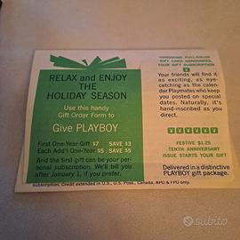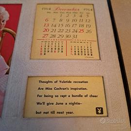 Playboy del 1964. Mai utilizzato, originale dell'epoca, presenta ancora le alette posteriori, per appoggiarlo sui ripiani. Le foto sono state censurate naturalmente solo fotograficamente. Questo tipo di calendari era venduto negli anni '60 dalla prestigiosa rivista Playboy che ne è l'originale produttrice Un porta figurine mensili con i 12 mesi, ognuno riportante una modella in posizione ammiccante, il mese ed una massima in inglese, in basso a destra. Inoltre con il calendario vi è l'originale lettera per abbonarsi alla rivista .Oggetto come da foto